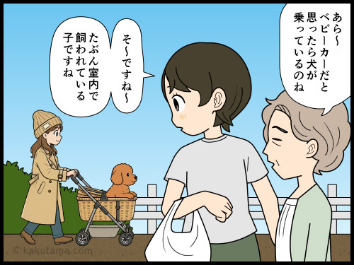 ダンナの親と外に出た時に、ペットカートに乗っている犬を見て昭和初期年代生まれのお義母さんが