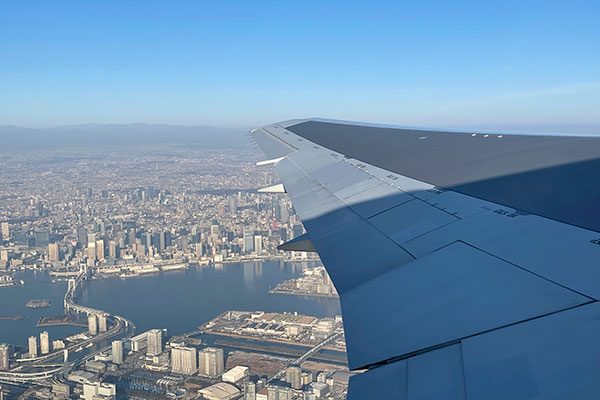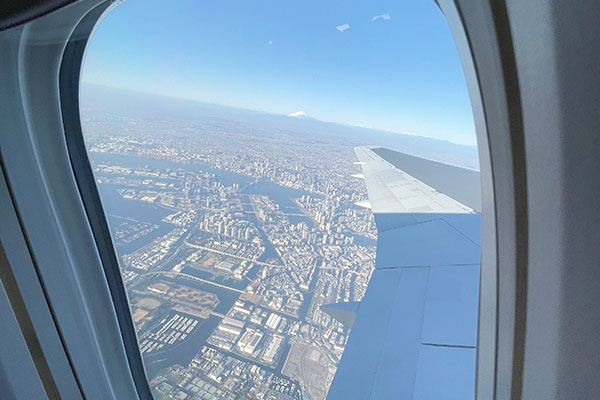 滑走路から飛び立つと、あっという間に空の上。