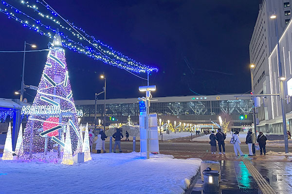 イルミネーションも綺麗な旭川の夜。