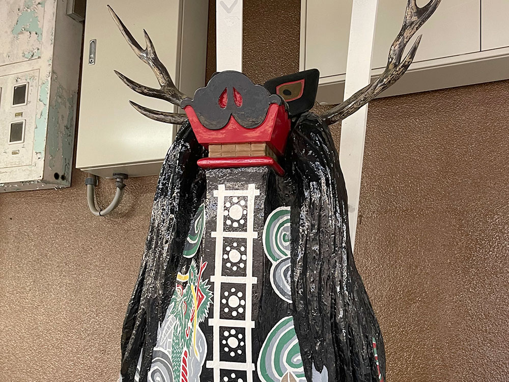 私が遠野を訪れた時に最初に立ち寄った花巻駅辺りで見た鹿踊りの人形